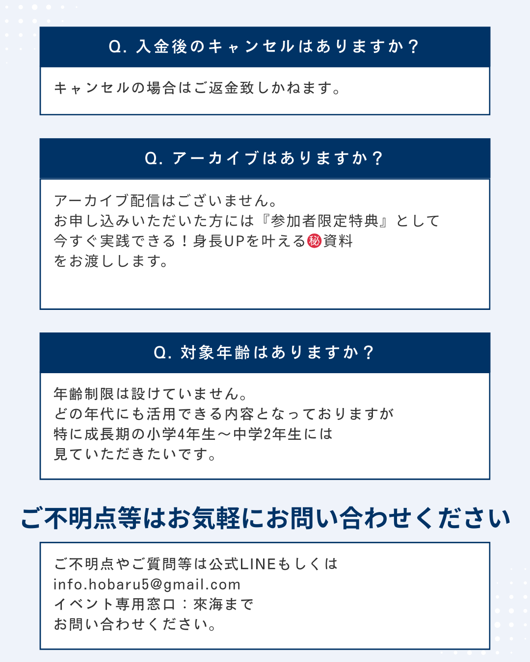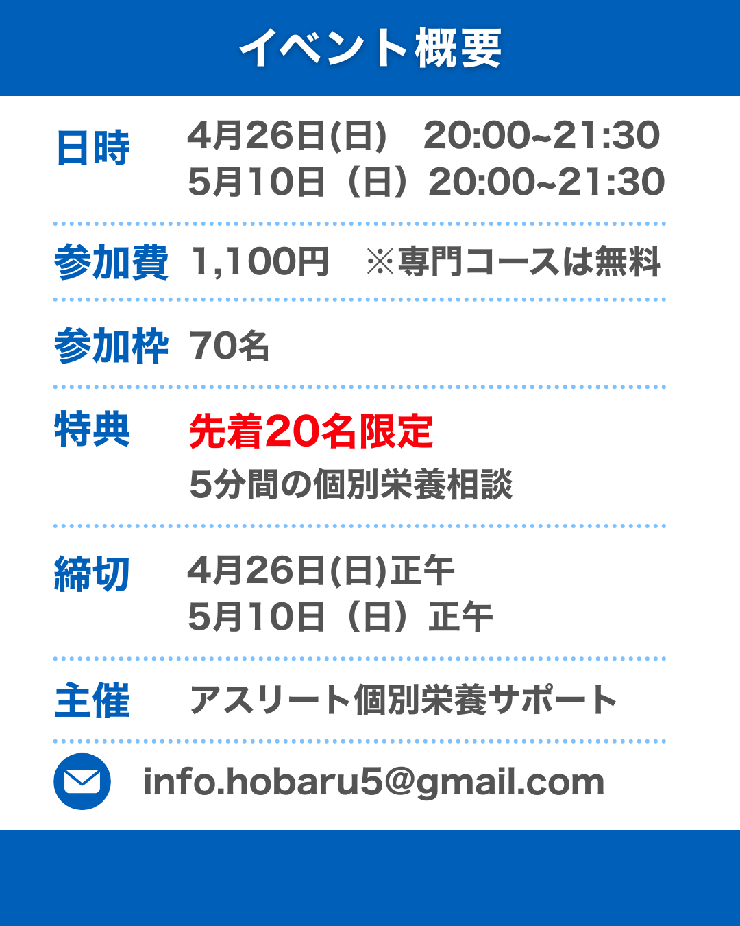 詳細はメールアドレスへ送信します。
